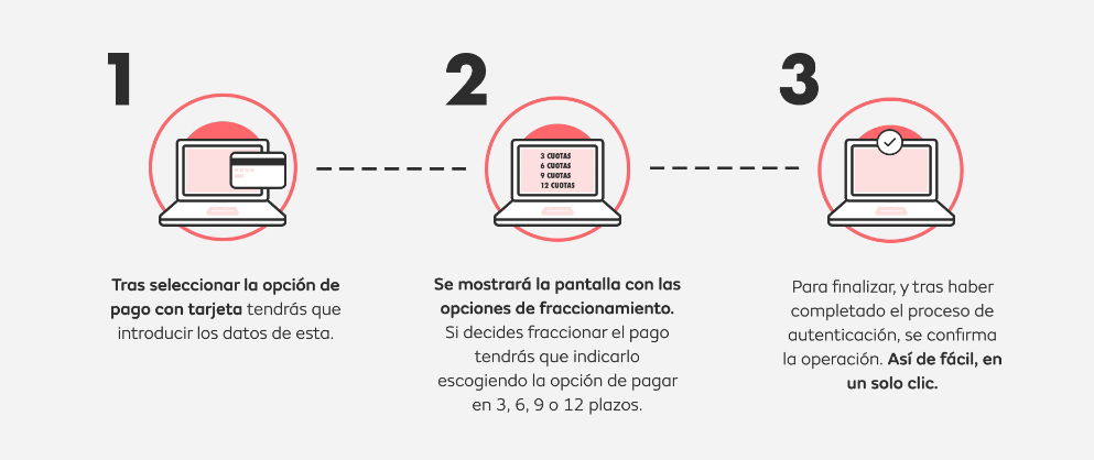 - Con la garantía, confianza y seguridad de que es su banco quien le facilita el pago fraccionado.