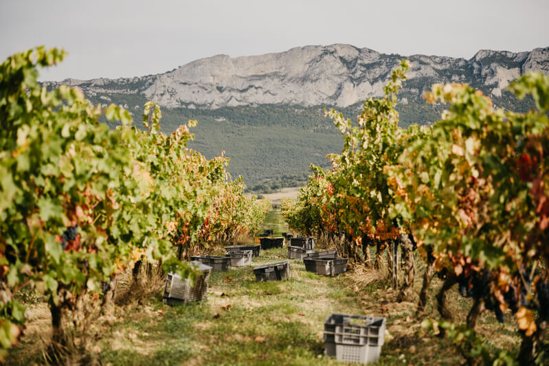 Procede de viñedos de Rioja Alavesa, donde realizamos un exhaustivo control de todas las fases del viñedo así como de las labores realizadas. Tanto la vendimia como el transporte de las uvas hasta bodega se llevan a cabo con el máximo cuidado para conseguir un estado óptimo y que la integridad de la uva a la entrada en bodega sea perfecta. La vendimia se realiza por zonas, favoreciendo la recogida de uva durante las horas de más frescas del día. La fermentación se realiza en depósitos de hormigón y de acero inoxidable, con control de temperaturas hasta un máximo de 28 grados, y con remontados diarios específicos para favorecer la extracción de compuestos nobles procedentes de los hollejos.