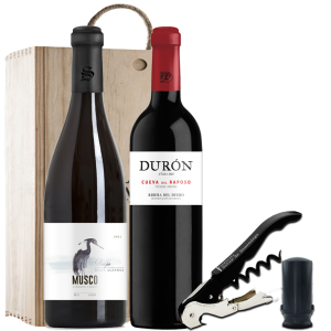 También ponemos a su disposición una selección de vinos D.O. Ribera del Duero elaborados en Bodegas Durón, ubicada en la localidad burgalesa de Roa, rodeada de más de 100 hectáreas de viñedos propios.